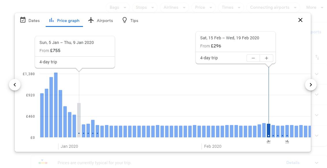 Once the user narrows down a destination, Google will show insights indicating whether flight prices are high, typical or low compared to what is usually available and also whether the price is expected to increase or decrease in the future.