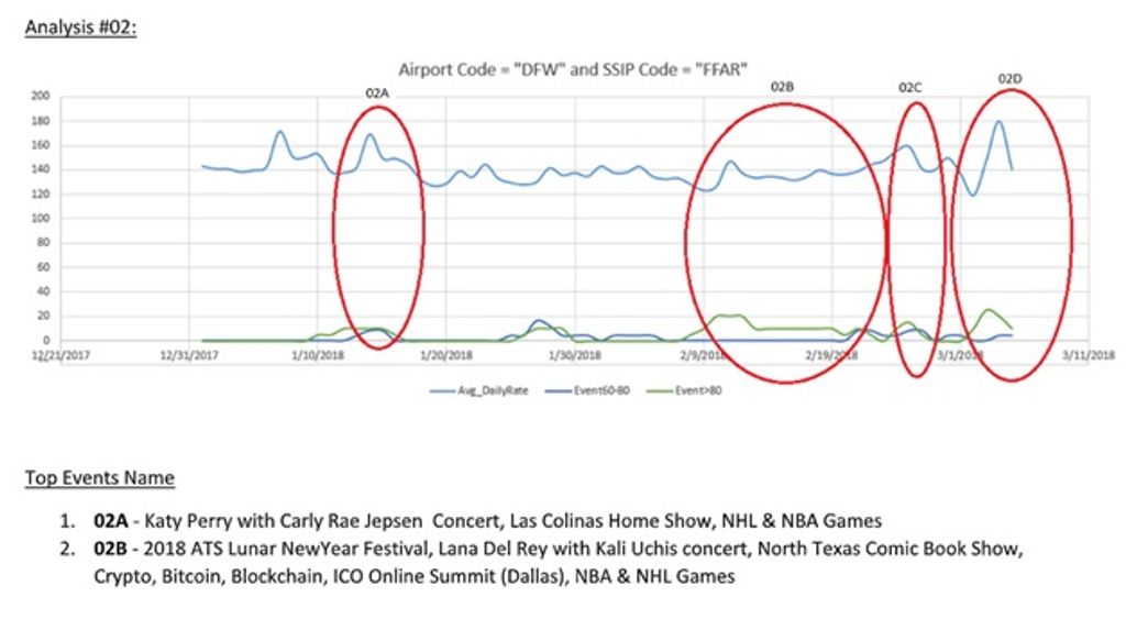 Notice how the biggest cluster of events, marked as 04C, produced the most notable increase in average daily rate. Pricing analysts should be sensitive to event clusters.